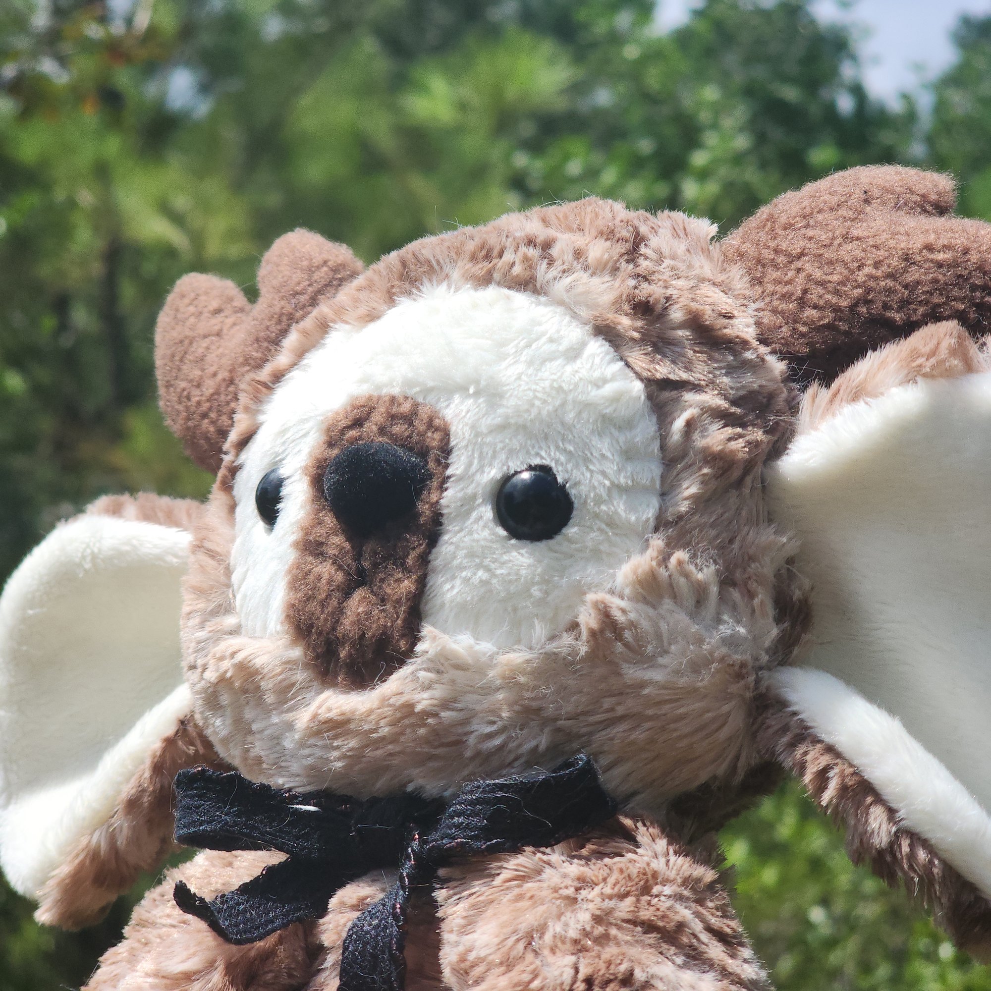 Twig is make with high quality minky fabric. He is weighted with poly pellets in his arms and legs. He is around 14in tall!